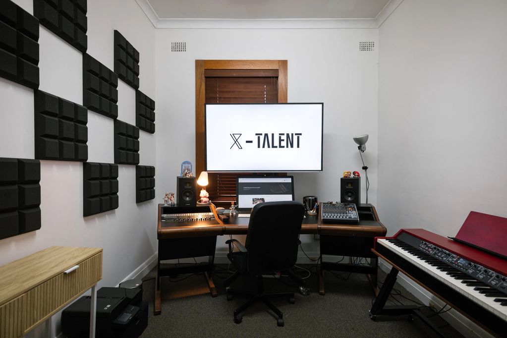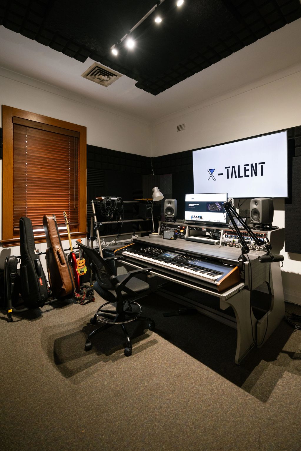 An acoustically treated studio designed for music production,